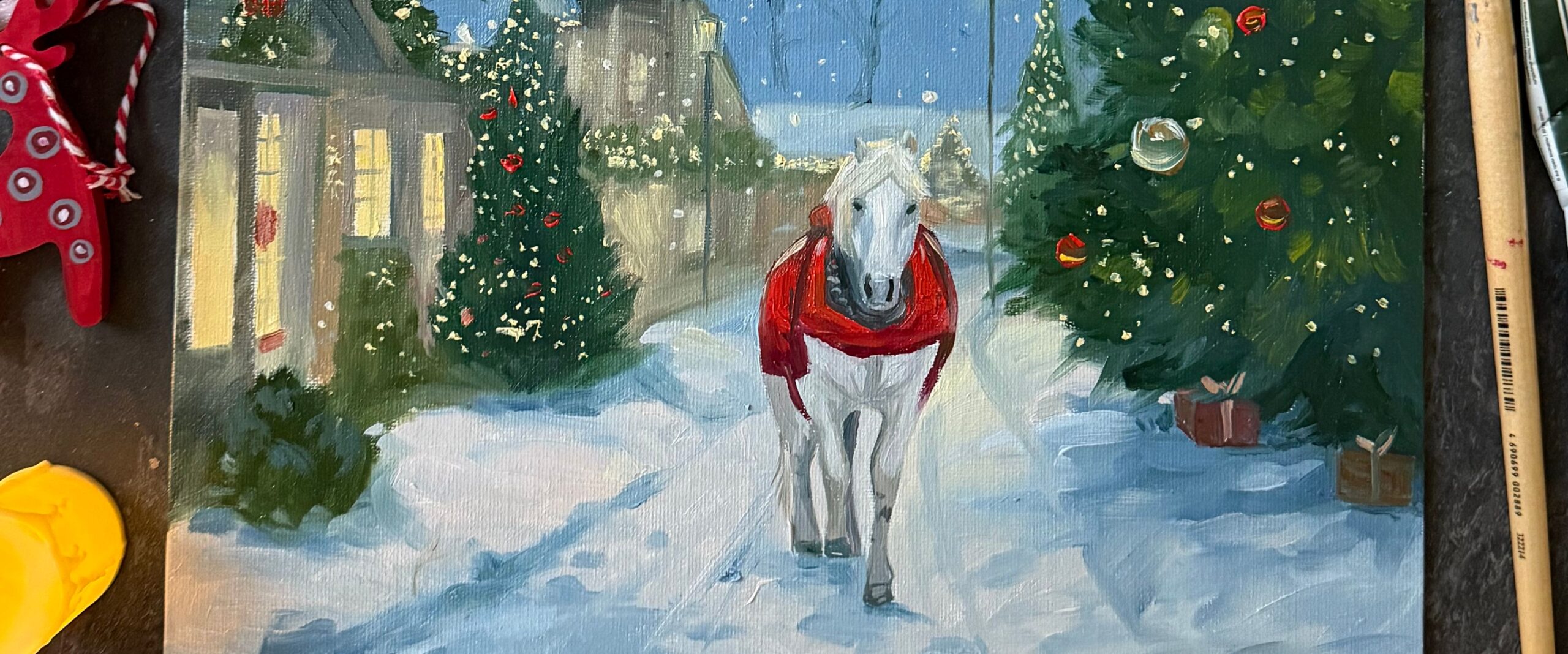 Участники познакомятся с правилами композиции, изучат свойства масляных красок, а после создадут красочную картину с новогодним сюжетом.