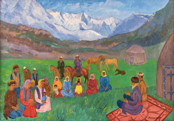 Они писали берега Иссык-Куля, лица соседей, шерстяные скатерти, развешанные в юртах. Рядом с полотнами — скульптуры, расписанные сосуды и тонкая керамика. В каждой работе — уважение к ритму жизни, внимание к деталям, сила тихой наблюдательности.